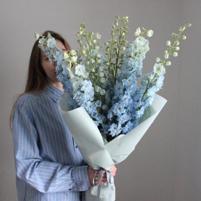 Дельфиниум – 9 шт.Упаковка – 1 шт.Лента атласная – 1 шт.