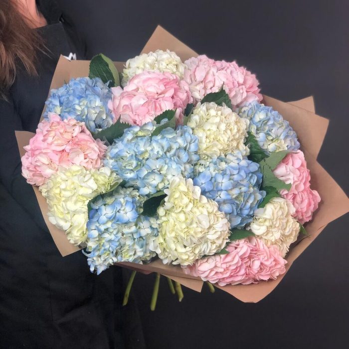 Большой букет из 15 гортензий