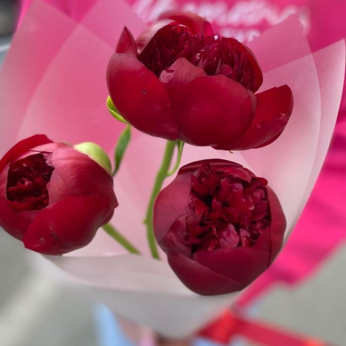 Упаковка дизайнерская – 1 шт.пионы бордовые – 3 шт.