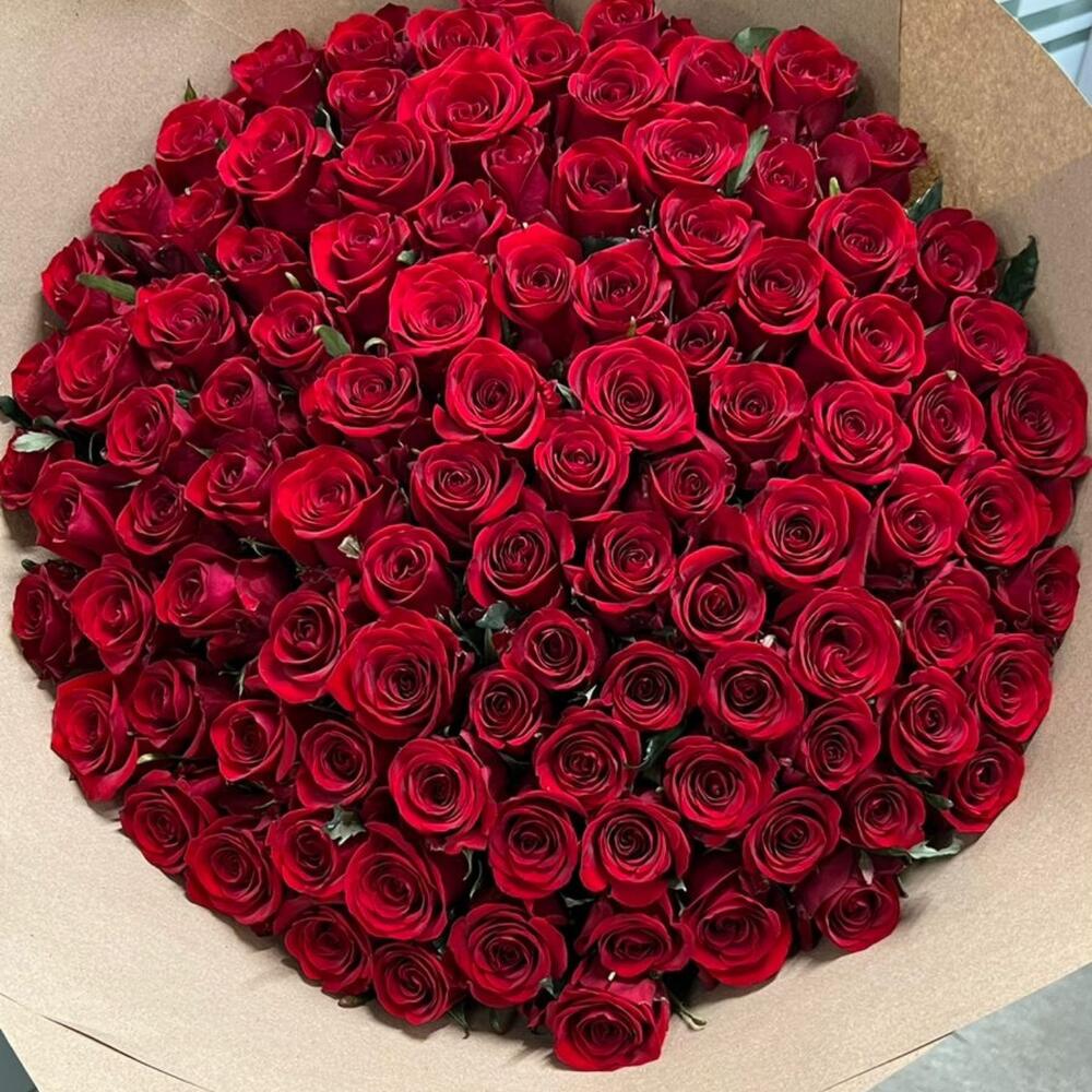 Лента атласная – 2 шт.Крафт – 5 шт.роза премиум красная 70 см – 101 шт.