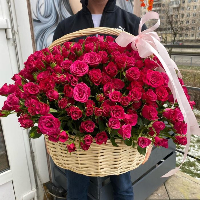 101 кустовая роза в корзине