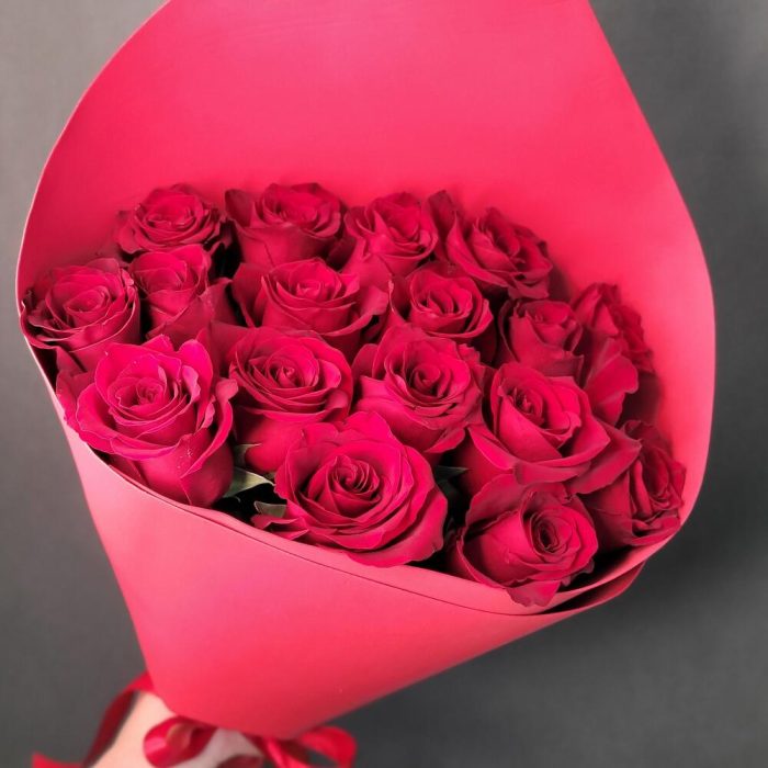 Роза Эквадор – 17 шт.Упаковка фоамиран – 1 шт.Лента атласная – 1 шт.