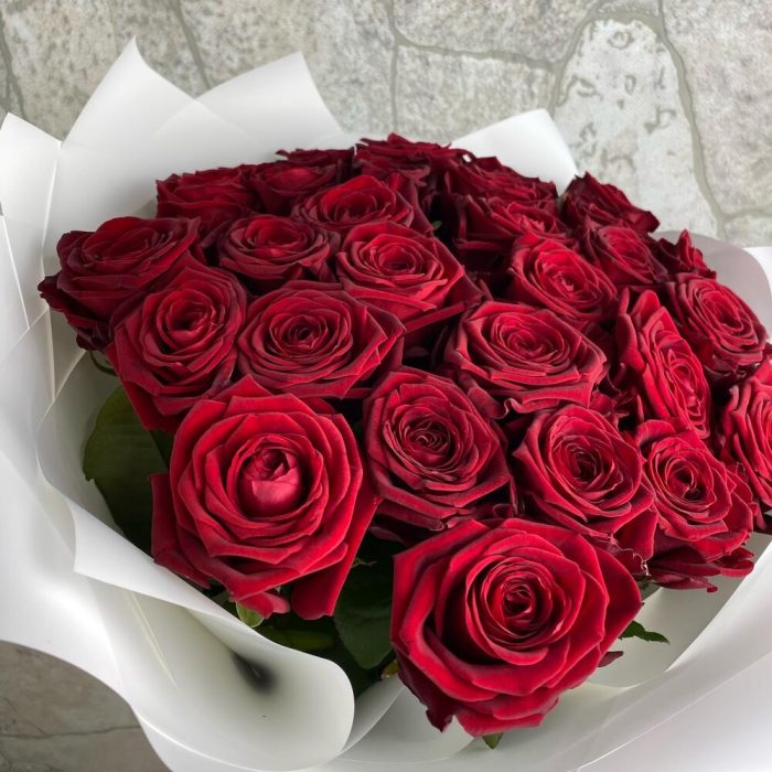 Роза 60 см – 35 шт.Упаковка – 3 шт.Атласная лента – 1 шт.