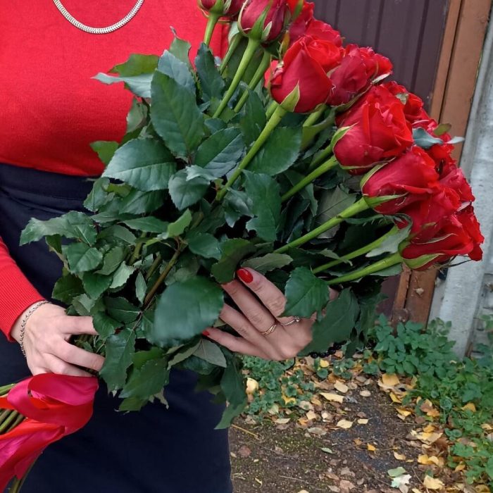 Лента атласная – 2 шт.роза россия 60 см красная – 15 шт.