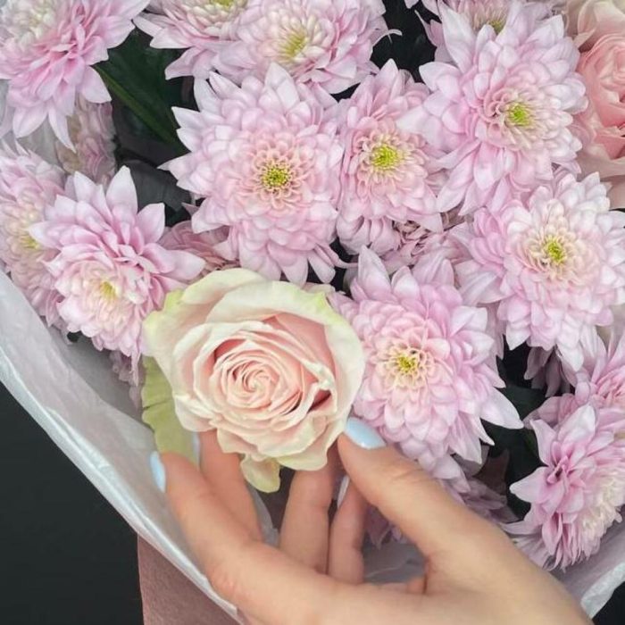 Букет хризантем в нежной упаковке