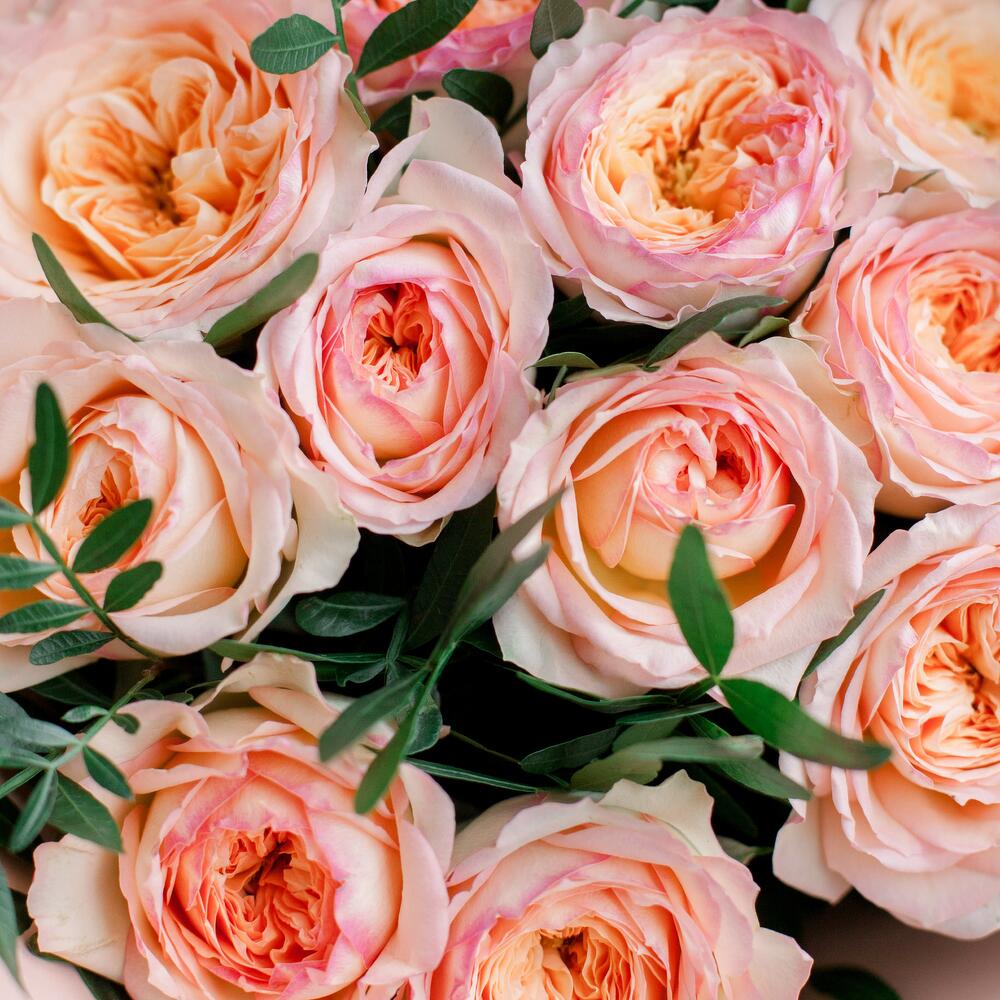 роза пионовидная 40 см flash back персиковая – 11 шт.Фисташка – 3 шт.