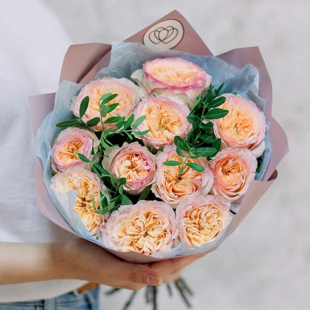 Фисташка – 2 шт.персиковые пионовидные розы – 11 шт.