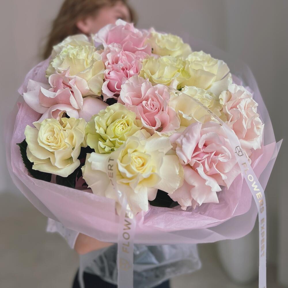 Букет из 15 французских роз “WHITE PINK MONDIAL