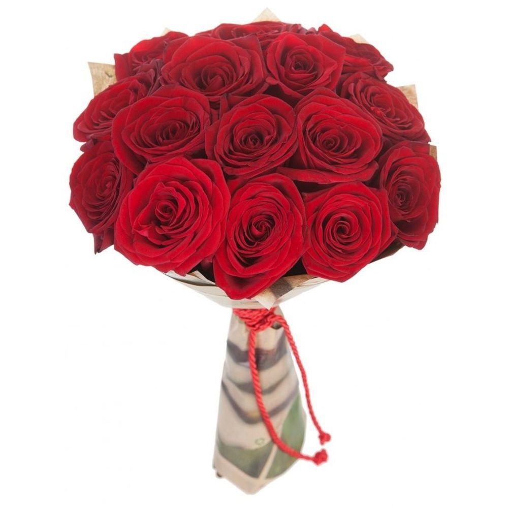 Букет из 15 красных роз в крафте