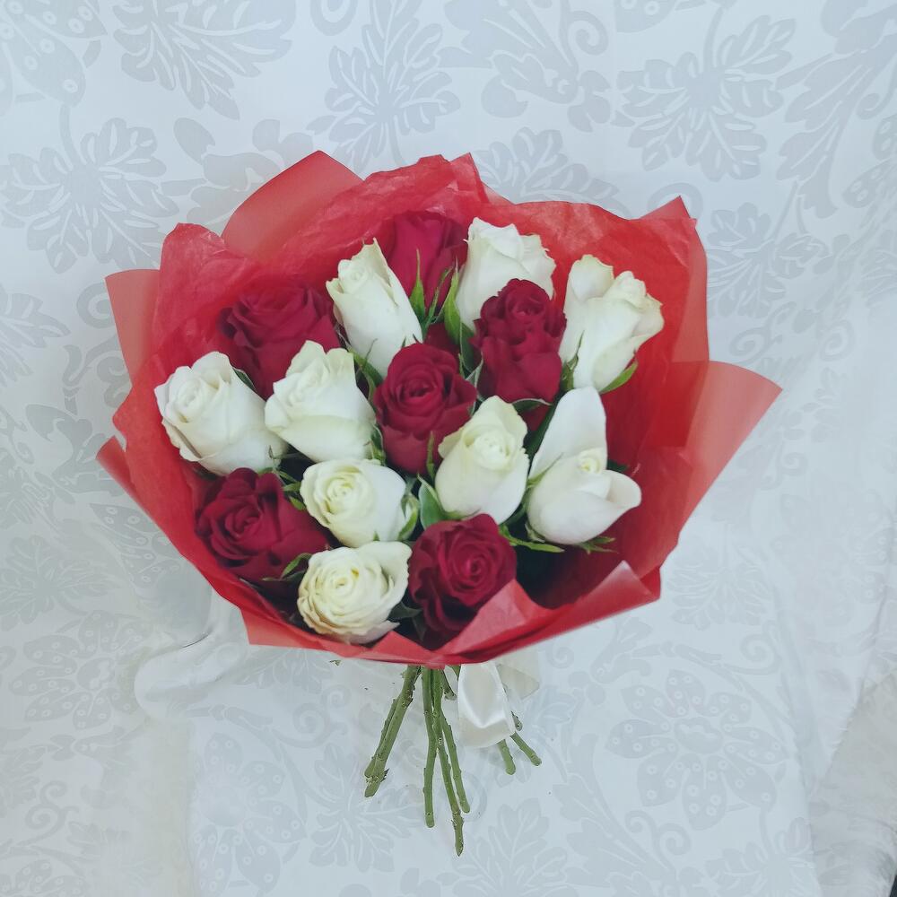 Букет из 15 роз красно-белый микс