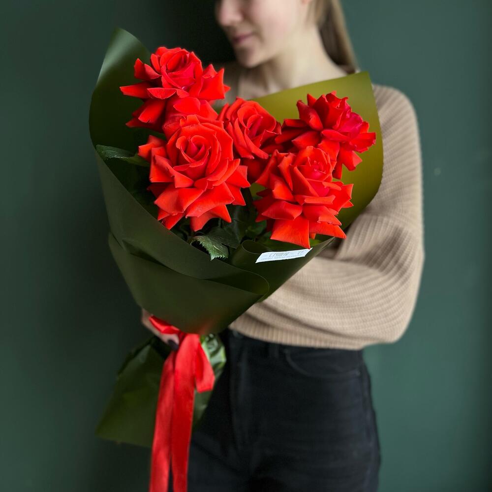 красная французская роза – 5 шт.Авторская упаковка – 1 шт.Мини открытка – 1 шт.Аквабокс – 1 шт.транспортировочная упаковка – 1 шт.