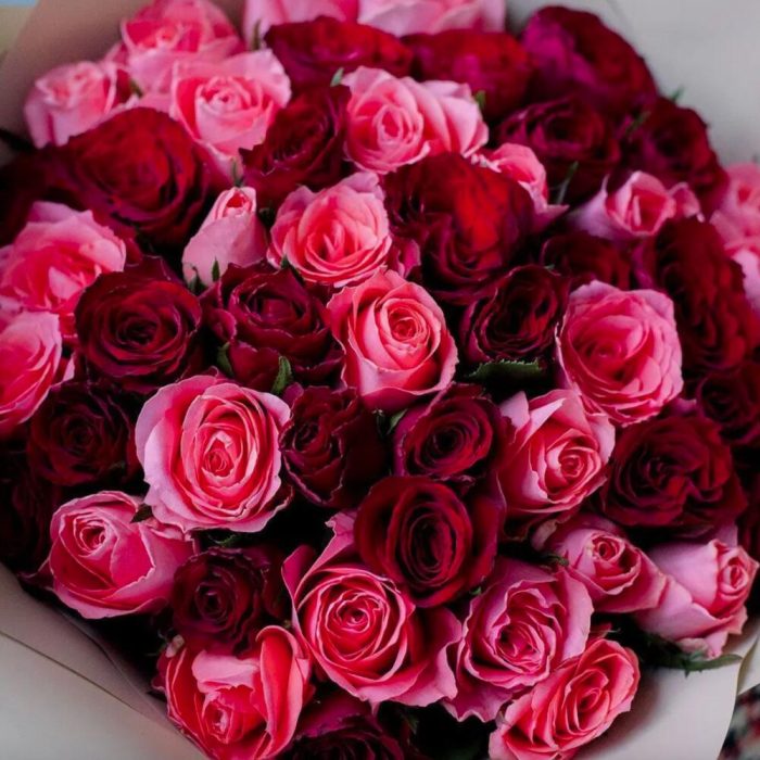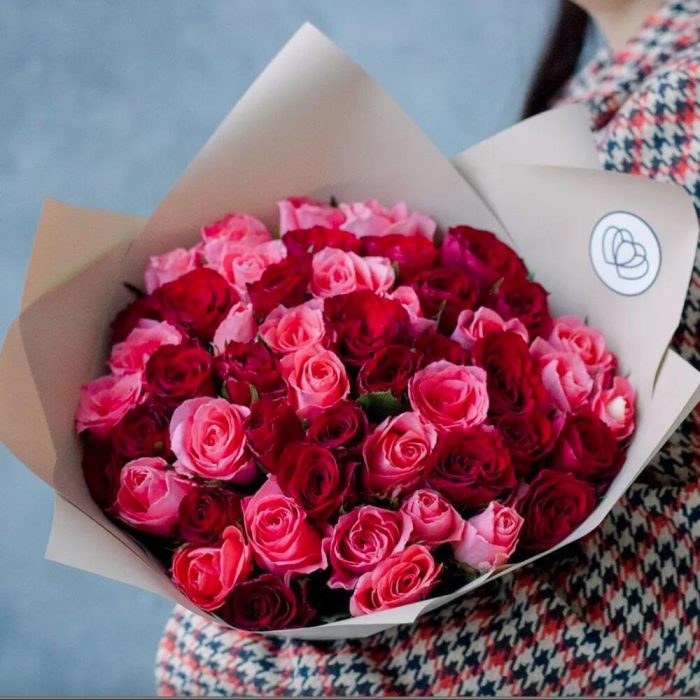 красные розы – 25 шт.коралловые розы (кения) – 26 шт.