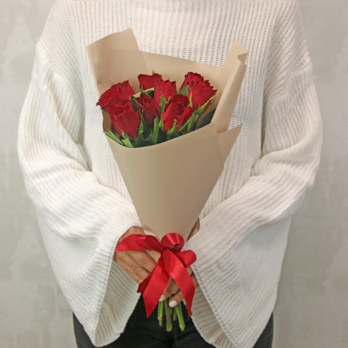 Букет из 9 красных роз 35-40 см (Кения) в стильной упаковке