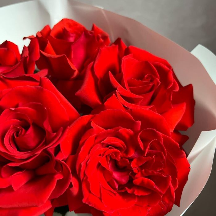 декоративная упаковка – 1 шт.Атласная лента – 1 шт.Роза Нина – 5 шт.