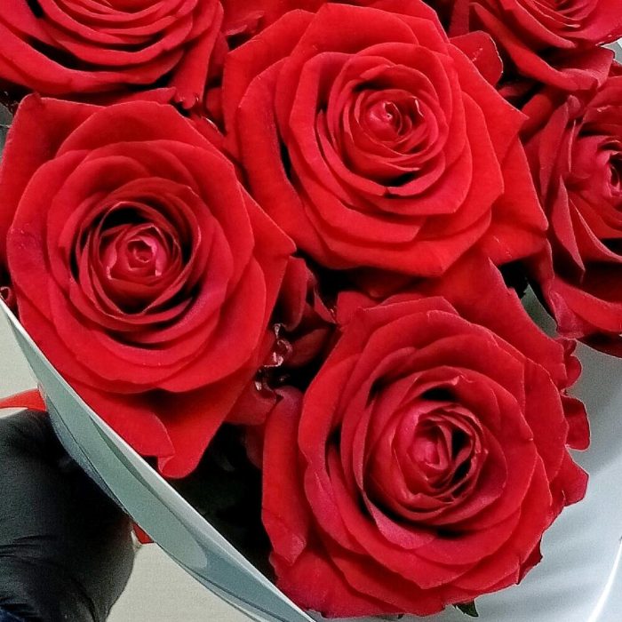Лента атласная – 1 шт.Пленка дизайнерская – 2 шт.сортовая роза red naomi – 9 шт.