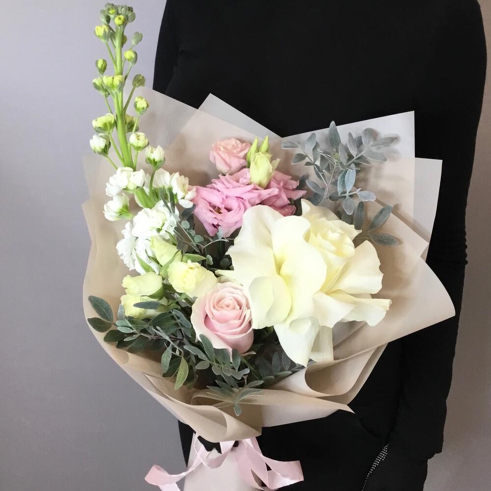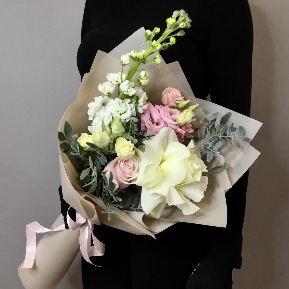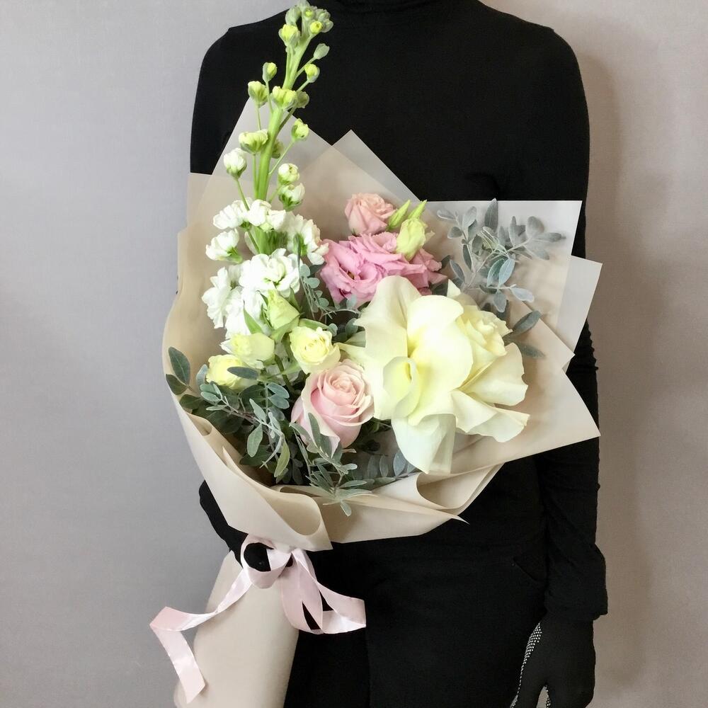 Букет из роз, матиоллы и эустомы «Просто так»