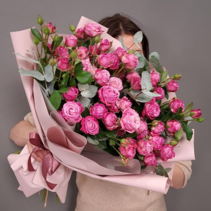 Категории: Кустовые розы, Пионовидные розы, Розы, Эвкалипт