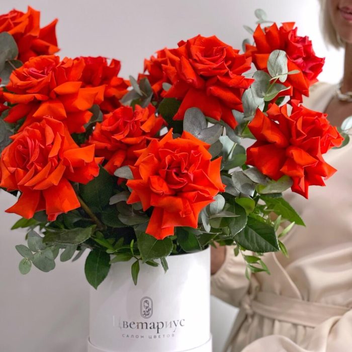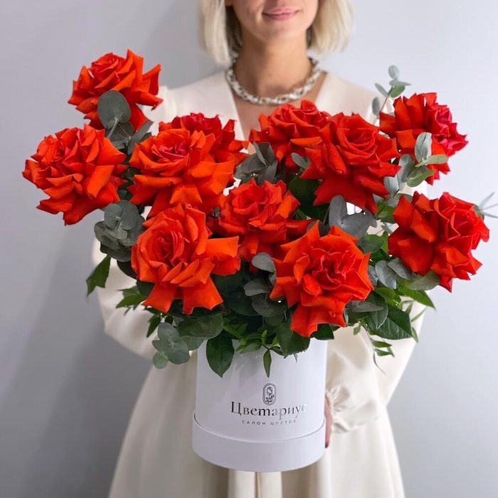 Французские красные розы в коробке