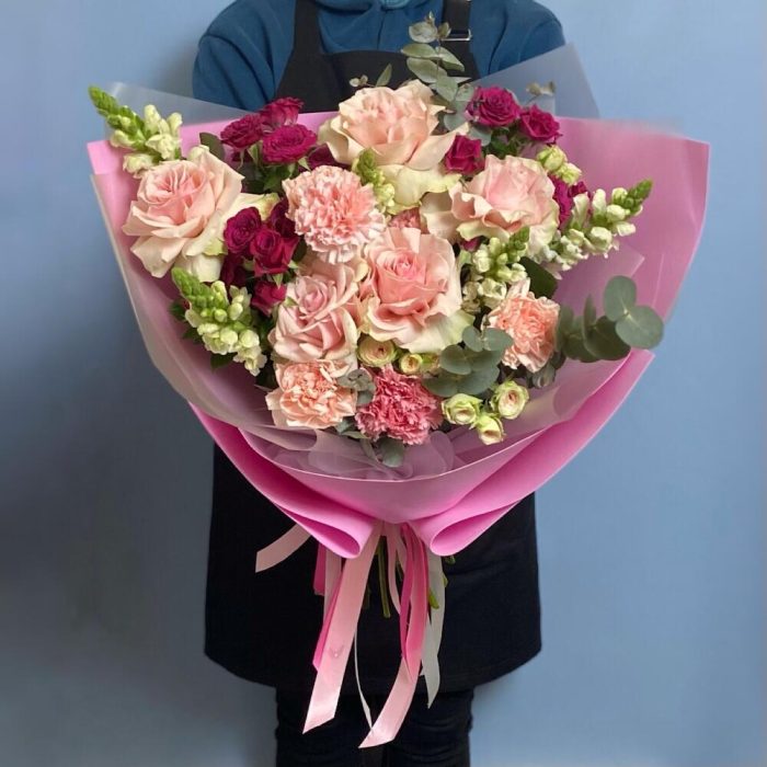 Гвоздики, Кустовые розы, Лизиантусы, Пионовидные розы, Розы