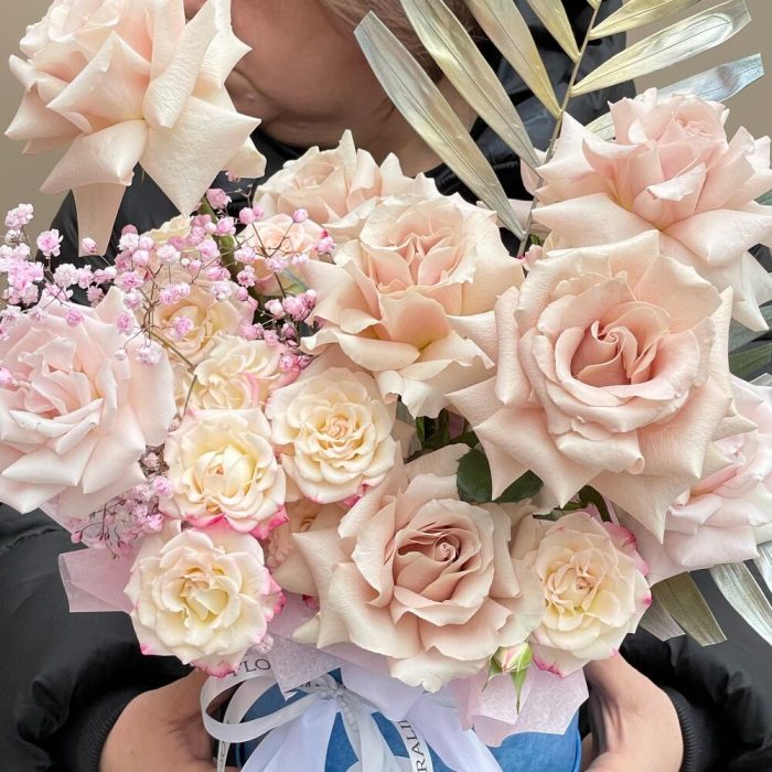 “В твоих глазах”: нежная шляпная коробка с французскими розами