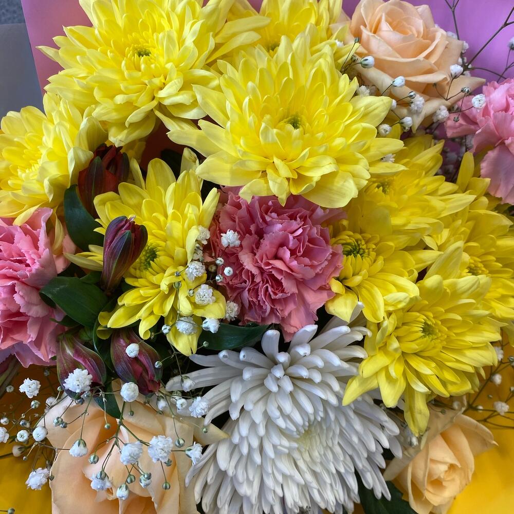 Категорий: Альстромерии, Гвоздики, Гипсофила, Кустовые розы, Розы, Хризантемы