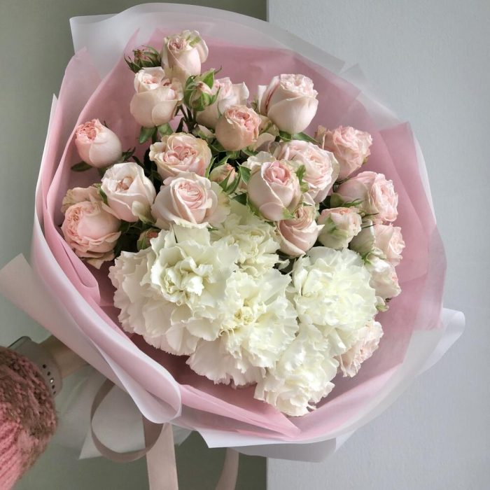 Гвоздики, Лизиантусы, Розы, Тюльпаны