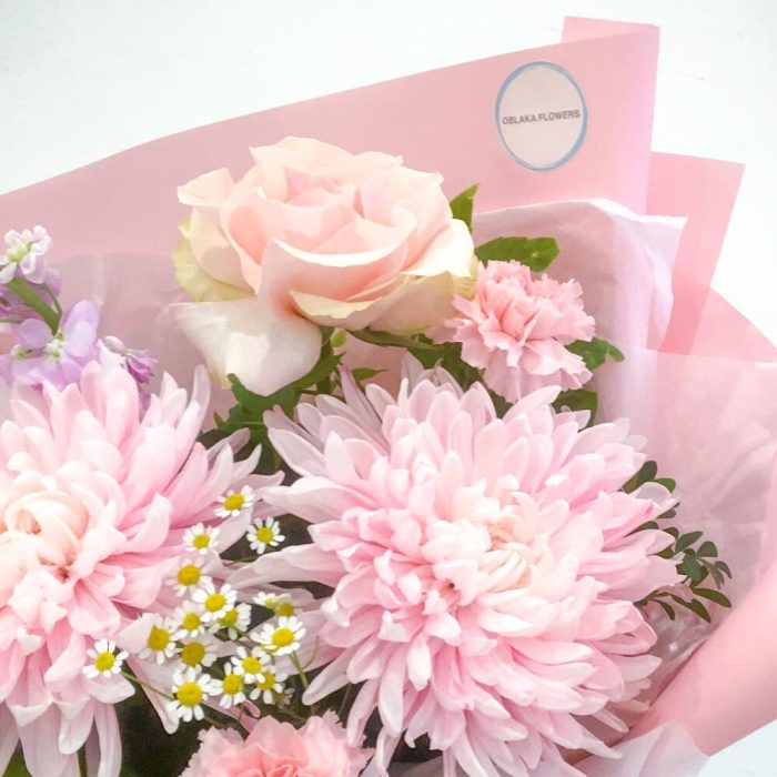 Нежно розовый букет с хризантемами