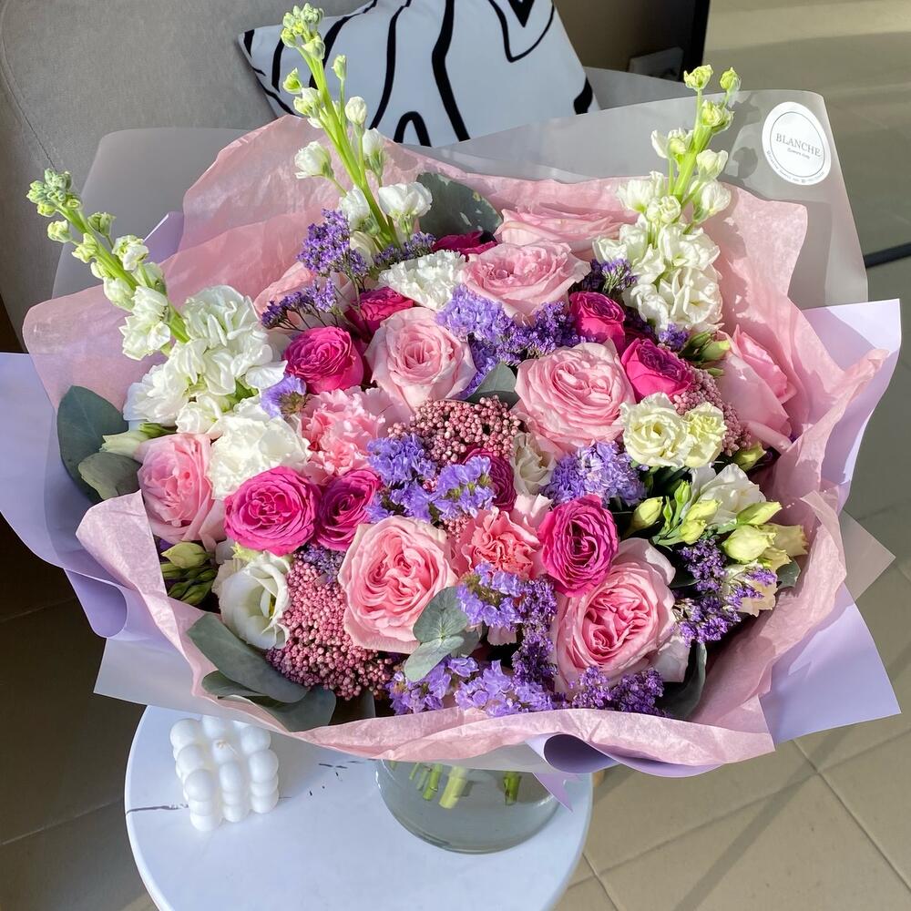 Ароматный букет роз и лаванды