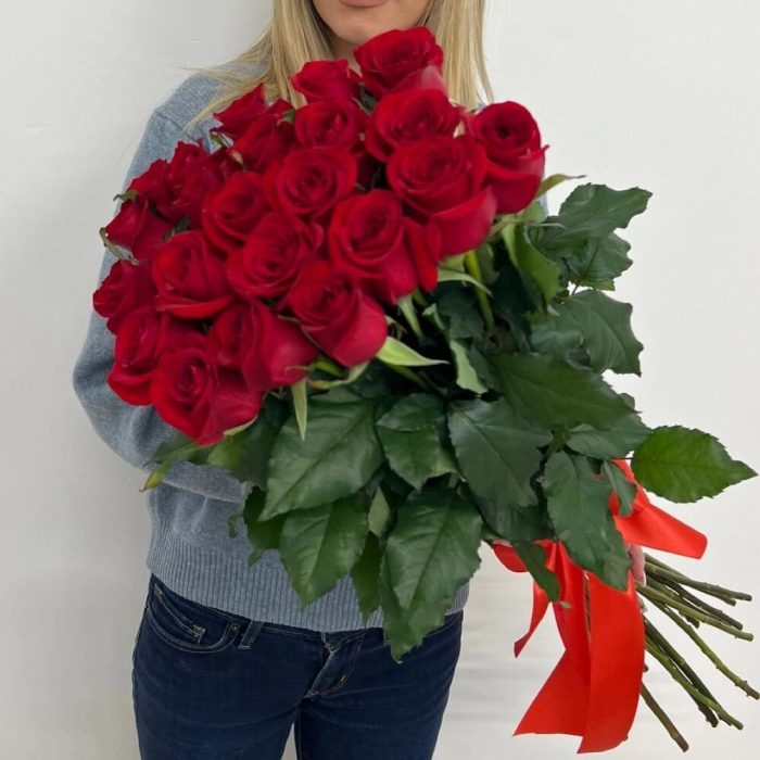 розы эквадор 80 см – 25 шт.Лента атласная – 1 шт.