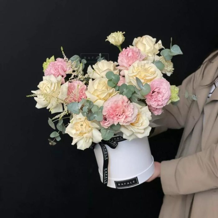 Роза голландская 60 см – 7 шт. астильба (голландия) – 2 шт. лизиантус (израиль) – 4 шт. эвкалипт (голландия) – 2 шт.